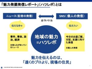 「ローカリティ!スクール」では、元新聞記者・元テレビ局記者らが、地域の魅力をいかにして発掘(取材)し、発信するかを学びます。「スクール!」卒業生は、魅力発掘発信レポーター(ハツレポーター)として、魅力を発信するレポート(ハツレポ)を作り投稿します。ハツレポは、文字や写真や動画で、地域の特ダネを伝えるものであれば形態は自由です。投稿された「ハツレポ」は、元新聞記者・元テレビ局記者らプロが、デスク・校閲をかけ、誤報のない地域の特ダネが、世界に発信される仕組みになっています。ハツレポーターは、今後、全国に拡大していく予定です。